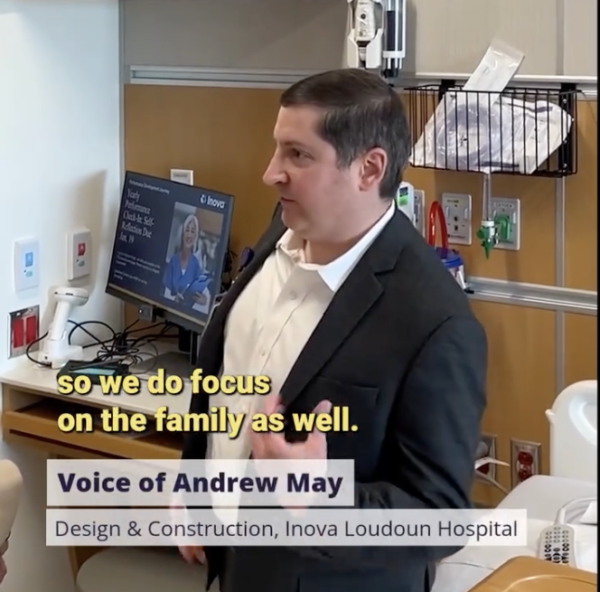 The new rooms are also larger and have telehealth technology on the walls to enable doctors to visit patients virtually as needed. Each room has “a family zone, so we do focus on the family as well as the patient being cared for,” said Andrew May, with Inova’s design and construction department.